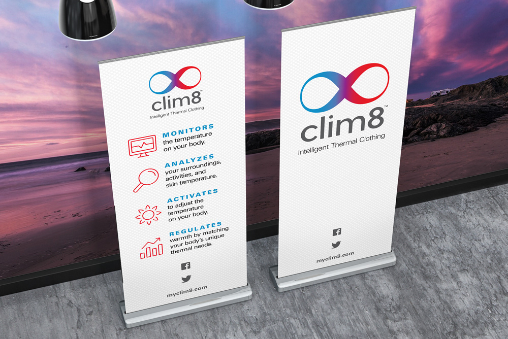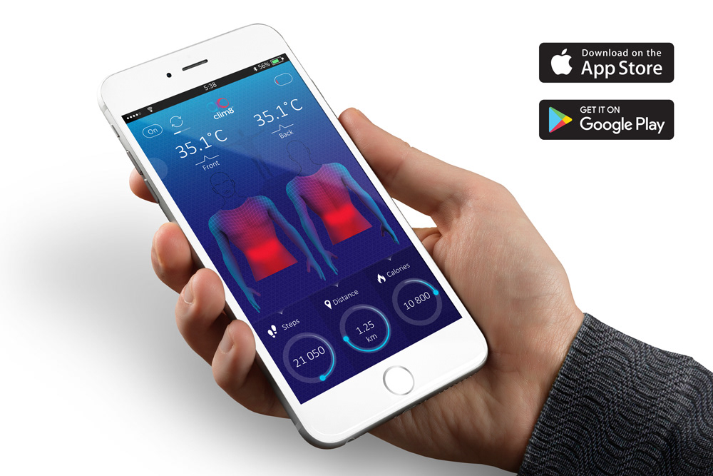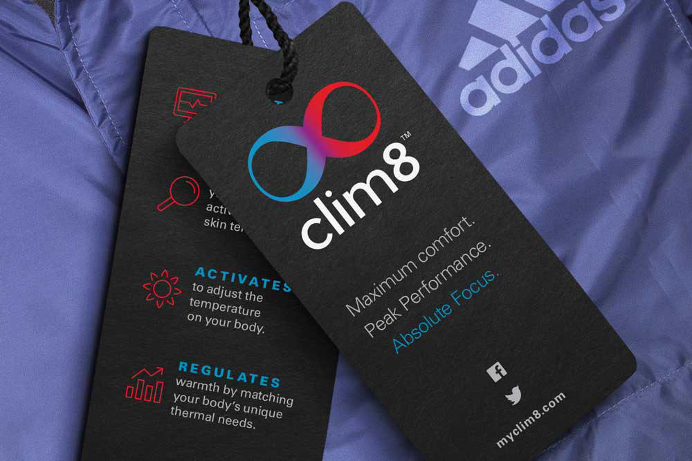 Launch materials for Clim8, an intelligent thermal technology that keeps you warm. Sensors in the garment monitor your skin temperature and adjusts to your needs.